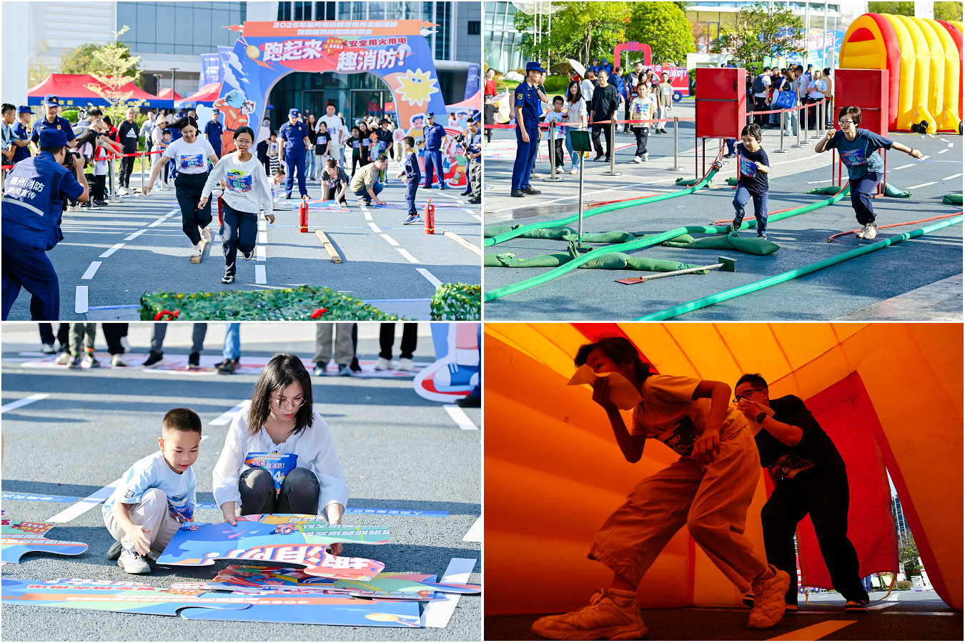 11月8日上午,福州晋安湖公园青鸾广场人声鼎沸,充满欢声笑语。“跑起来,趣消防!”2025年福州市消防宣传月主题活动暨首届消防趣味运动会在此举办。本次活动由福州市消防救援支队主办,围绕“全民消防 生命至上——安全用火用电”主题,巧妙将消防知识融入趣味竞技,吸引了119组参赛家庭及上千名市民踊跃参与。