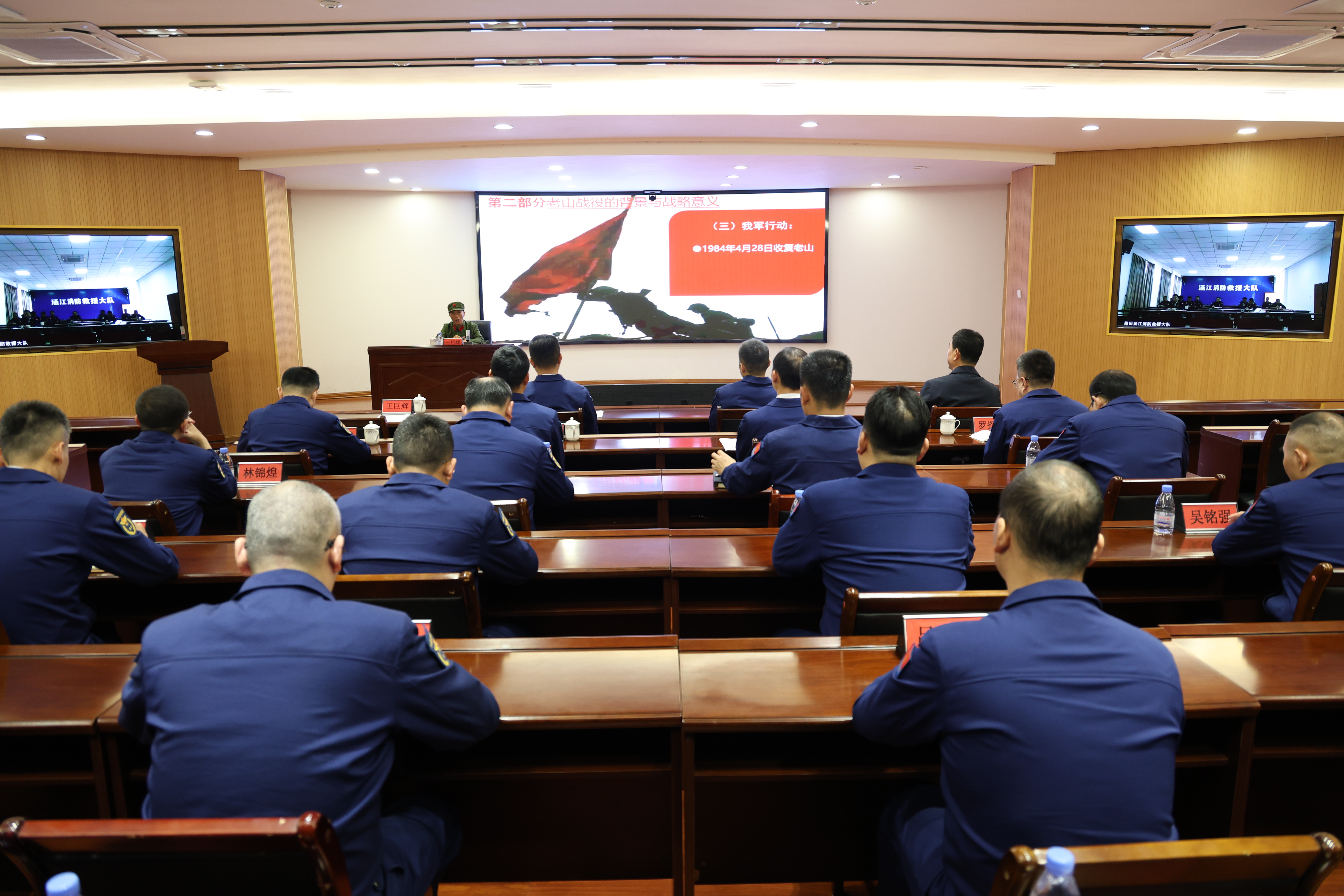 此次主题宣讲活动,全体指战员深受触动、备受鼓舞,大家纷纷表态,将以老兵英雄为榜样,赓续红色血脉、弘扬老山精神,自觉把正确政绩观落到岗位实践中,将老山精神融入血脉、刻进骨髓,把老兵们“不怕苦、不怕死、不怕亏”的坚守,转化为赴汤蹈火的勇气、守护平安的担当,以青春赴使命、以热血践忠诚,用消防人的坚守与奉献,守护莆田万家灯火,奋力书写无愧于时代、无愧于使命的“火焰蓝”荣光。