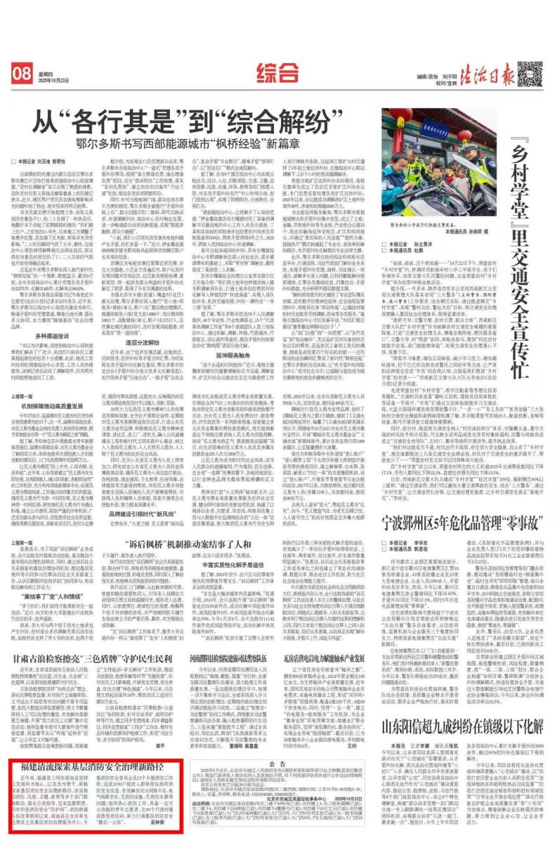 10月23日,《法制日报》报道《福建清流探索基层消防安全治理新路径》。
