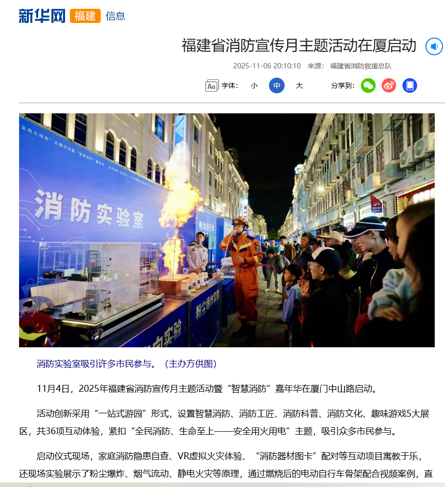 此次活动由福建省消安委、省消防救援总队主办,厦门市消防救援支队承办,现场通过科普游园活动和系列舞台节目,吸引群众在游玩参观中学习消防安全知识与技能,充分展示福建省“智慧消防综合服务平台”(以下简称“智慧消防”平台)与基层消防安全治理体系深度融合的建设成果,感受“智慧消防”给火灾防控工作带来的诸多利好变化和实用便民服务。