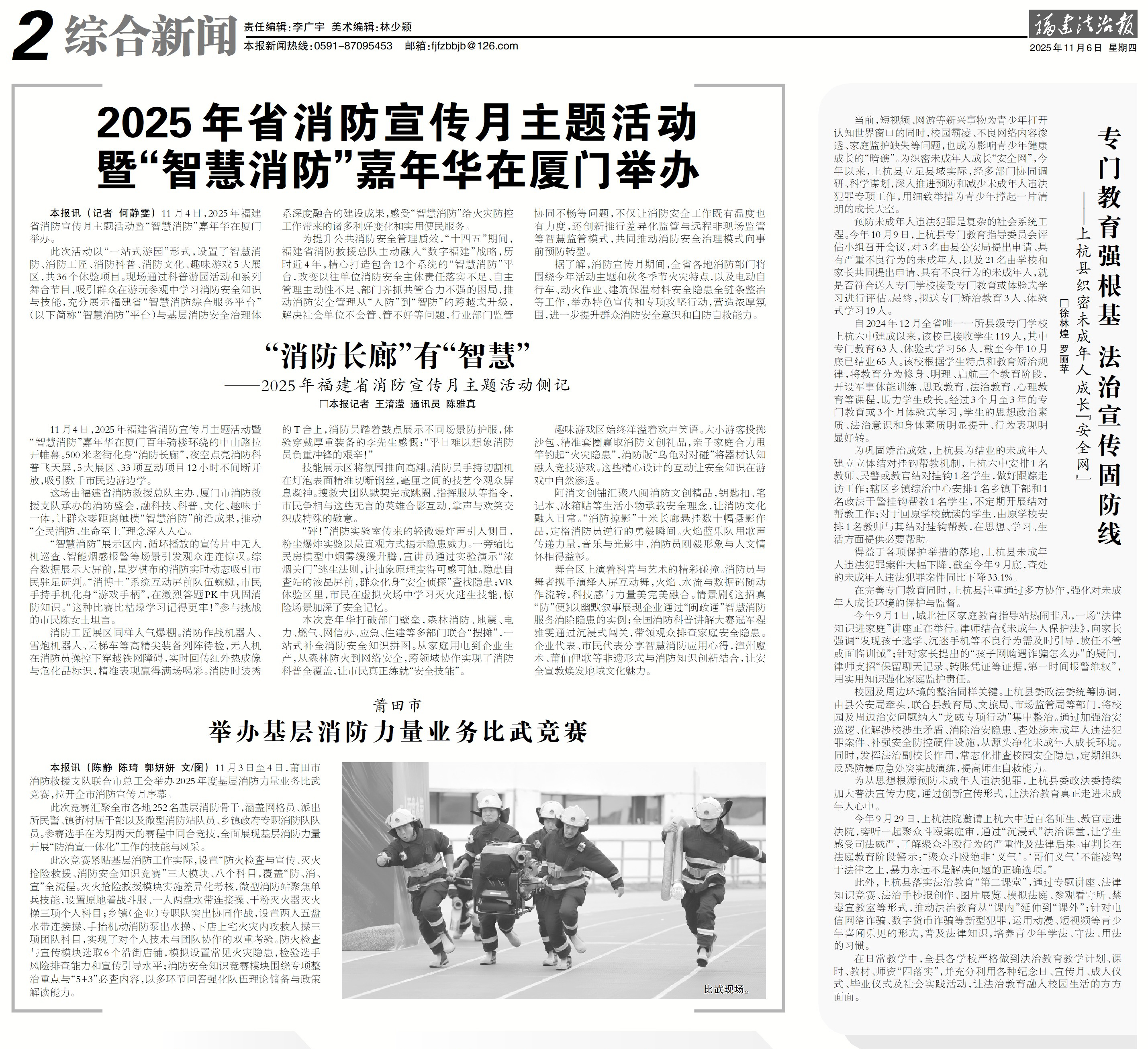厦门兴才职业技术学院“青匠沐光”实践队的60余名“志愿红”也在各个展区中忙碌,他们全程保障33个体验项目顺利开展,向群众宣传消防相关知识,尤其在服务老人、儿童等群体时展现出细致与温暖,有效搭建起消防安全与公众认知的桥梁。