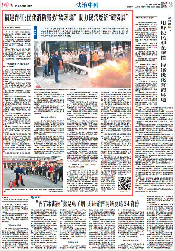 12月10日,《中国青年报》报道《福建晋江:优化消防服务“软环境” 助力民营经济“硬发展”》,原文如下: