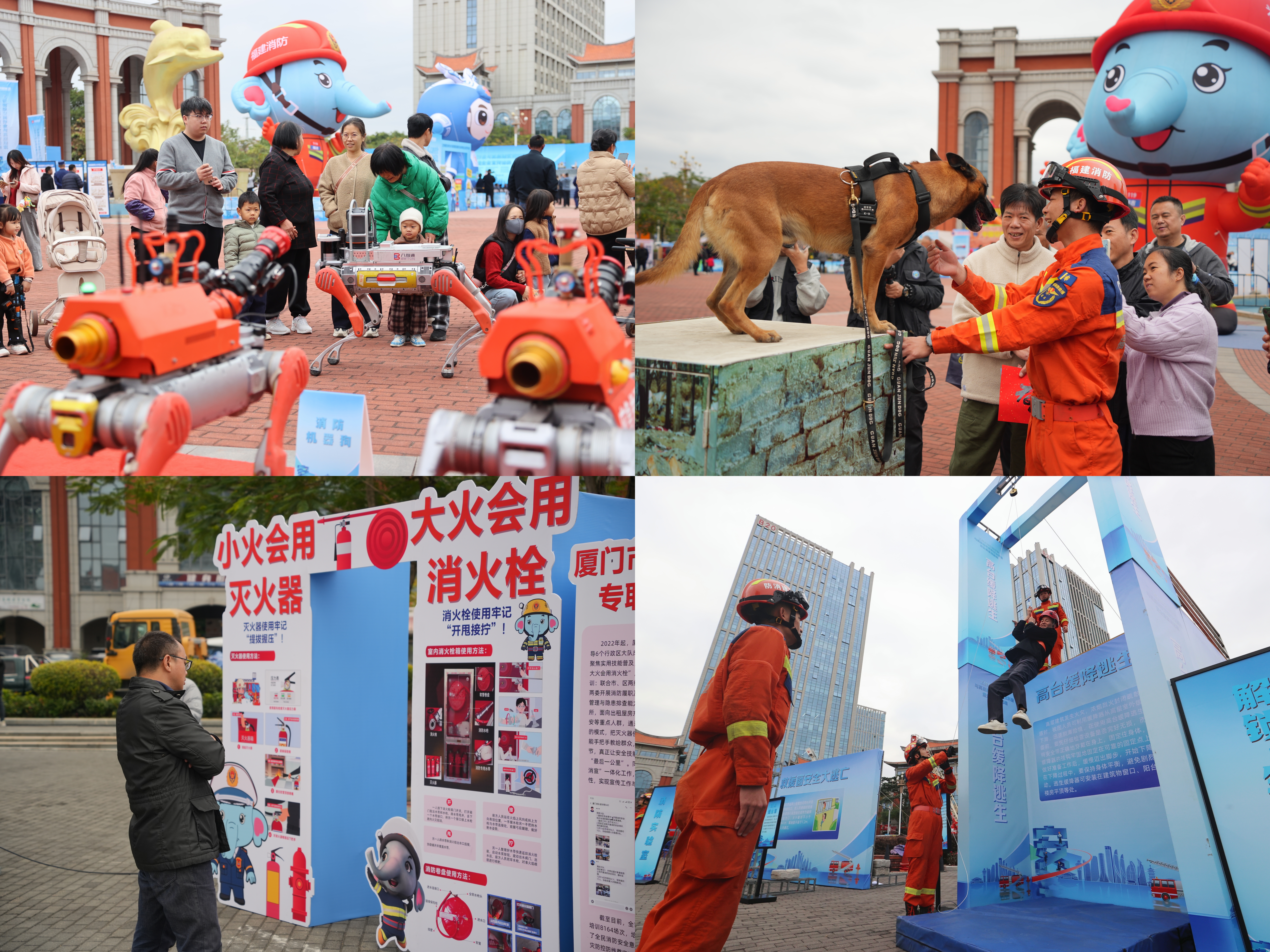 一批高精尖灭火救援装备集体亮,灭火机器人、搜救机器狗等一批“黑科技”装备吸引了市民的围观,不少群众赞叹“消防装备太硬核了”。厦门消防搜救犬队的4只搜救犬现场表演指挥服从、箱体搜救等项目,让市民近距离感受搜救犬风采,成为市民热捧的“天团”。
