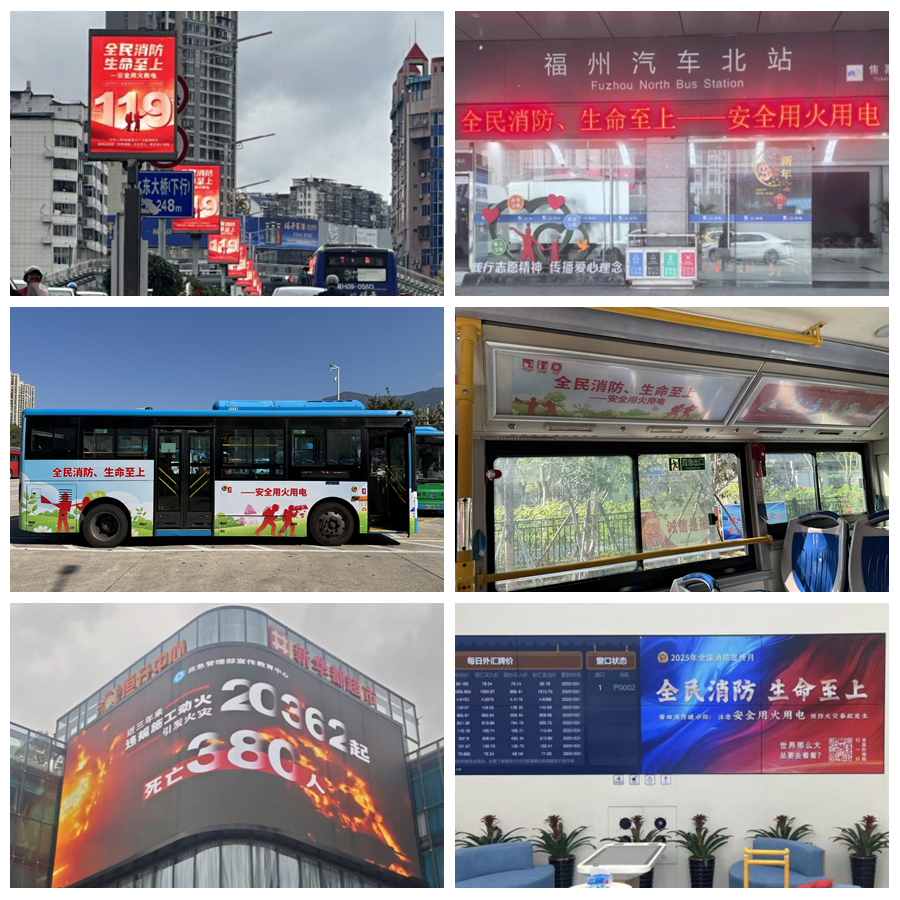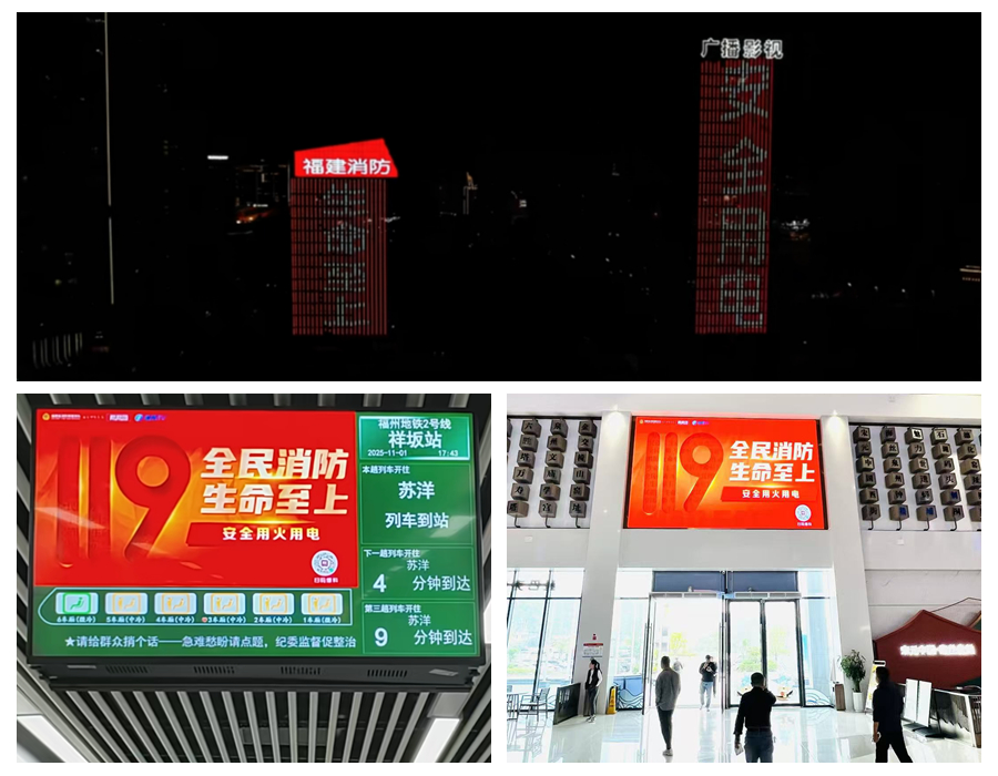 为充分营造2025年消防宣传月浓厚氛围,扩大消防安全宣传覆盖面与影响力,11月初以来,福建省消防救援总队协调省广电大楼户外大屏、福州地铁全线站点电子屏、全省高速公路服务区等重点公共媒介开展“亮屏”宣传,高频次滚动播放“全民消防 生命至上——安全用火用电”主题标语及公益宣传片,以高流量、广覆盖的示范效应引领全省“亮屏行动”全面铺开。