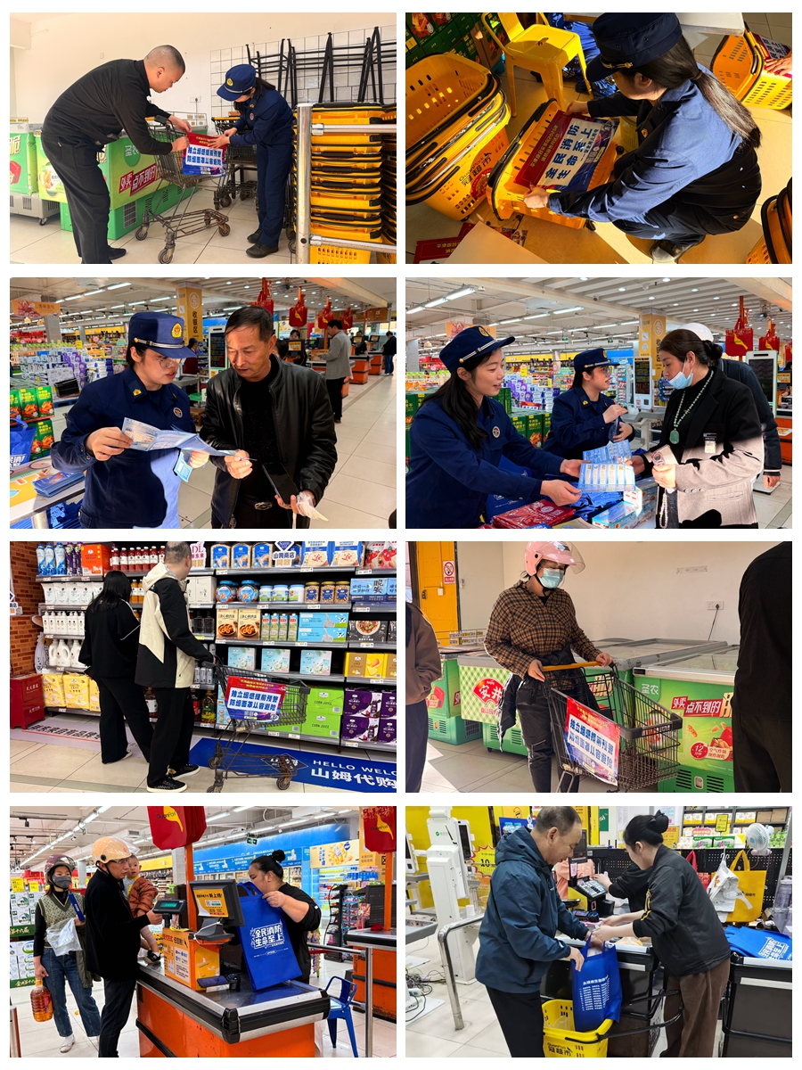 宣传中,现场设立消防咨询台,摆放消防安全知识手册以及消防宣传品,吸引了前来购物的群众驻足观看学习。消防宣传人员耐心解答群众咨询,为群众发放《消防平安宝典》《家庭防火常识》等宣传资料,讲解火灾主要特点、预防火灾措施方法以及初期火灾处置技能,讲授灭火器使用方法,科普各类火灾事故危害、家庭安全用火用电用气、电动自行车规范停放充电、保持消防车通道畅通、正确拨打119火警电话等消防安全知识,学习火场逃生自救、扑救初起火灾等技能。同时,超市收银员还“充当”着消防宣传员的角色,向每一位排队结账的顾客免费发放消防宣传资料,进一步延伸消防宣传触角。