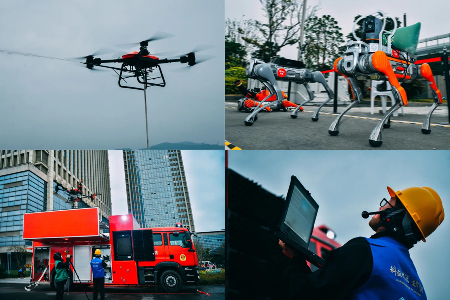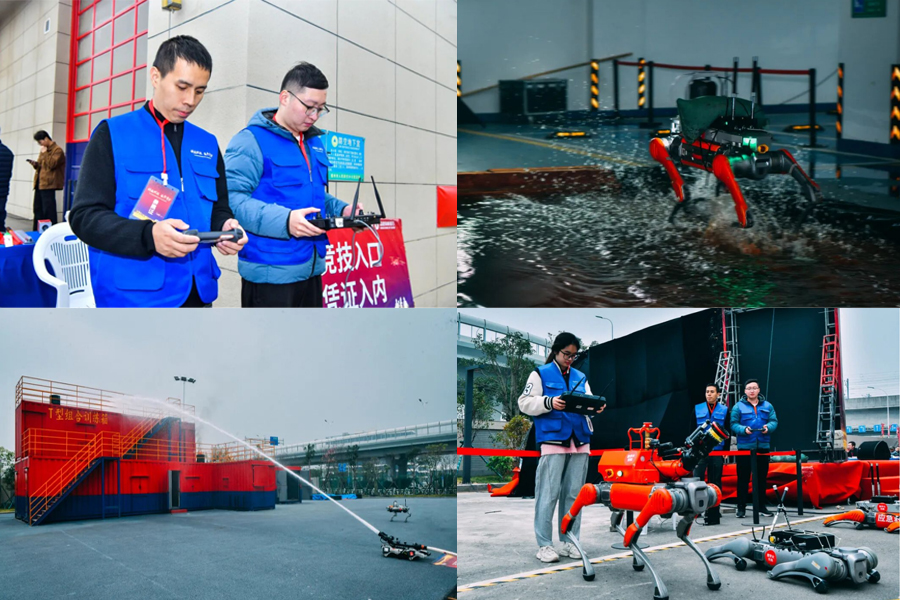 本次竞技的三大核心项目,均源于真实救援场景,极限环境下尽显装备硬实力,一是四足机器人长距离无信号隧道侦察负重效能竞技。在福州消防救援支队空勤基地的隧道与封闭空间赛场,四足机器人需自主穿越坡度、碎石堆、积水坑等6类障碍,在无信号环境下完成侦察数字识别与20KG物资负重运输,其精准的自主越障能力、稳定的通信传输表现赢得现场阵阵赞叹。二是四足机器人环境适应及灭火效能竞技。“灭火狗”与“侦察狗”协同作战,在封闭空间内精准完成灭火、有毒气体检测、热成像生命探测等任务。IP67防水防尘、独立防火封装等设计,保障装备在复杂环境下可靠运行。三是无人机高层灭火效能竞技100米高空赛场精彩纷呈!无人机垂直爬升100米后,依次完成10KG物资抛投、10mm钢化玻璃破窗、精准灭火任务,高空悬停精度、载荷稳定性拉满,展现破解高层火灾难题的强大潜力。赛事采用“双计时制”+多维度摄像记录,全程公平公正,判定留痕可追溯。