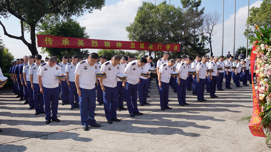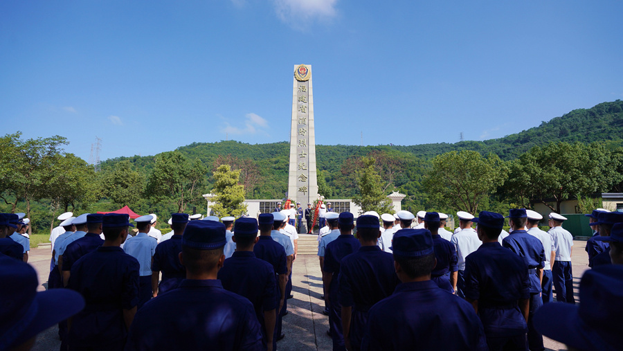 仪式现场庄严肃穆,苍松翠柏环绕,位于福建圣泉生态陵园的全国首座消防烈士纪念碑——福建消防烈士纪念碑蔚然矗立。总队在家党委班子成员、总队机关除执勤值班外的全体指战员、福州支队和新训支队指战员代表共200余人参加仪式。