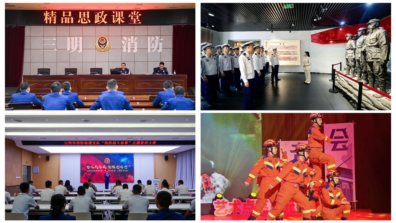 聚焦为战铸魂“葆本色”。支队常态化开展重温训词、誓词活动,开设12期“精品思政课堂”,引导队伍坚定信念、牢记嘱托、担当使命。用好红色文化资源,更新拍摄10个“云参观”讲解视频,依托政治工作协作区广泛开展“追寻红色足迹 砥砺血性胆气”见学活动,在传承红色基因中砥砺血性胆气。组织传唱消防救援题材原创歌曲,举办“我的战斗故事”主题宣讲比赛,联合近邻党建单位举办“忆烽火岁月 唱英雄赞歌”、“我和我的三明”歌咏、晚会等活动,在浸润感染中滋养战斗精神。