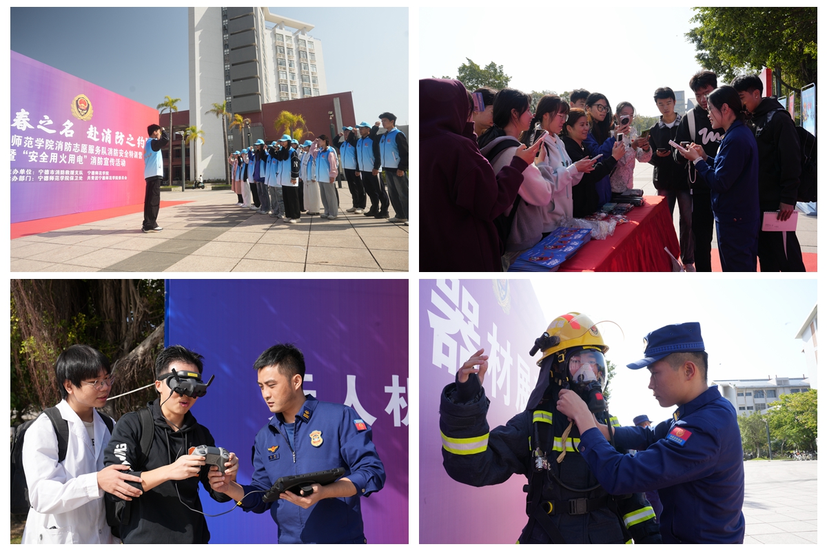 11月26日,宁德市消防救援支队、宁德师范学院联合开展“以青春之名 赴消防之约”——宁德师范学院消防志愿服务队消防安全特训营暨“安全用火用电”消防宣传活动。
